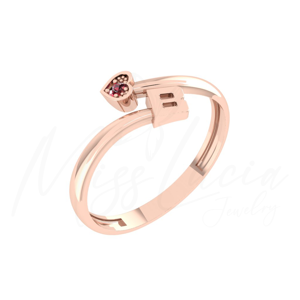 B Gold Heart Minimal Ring