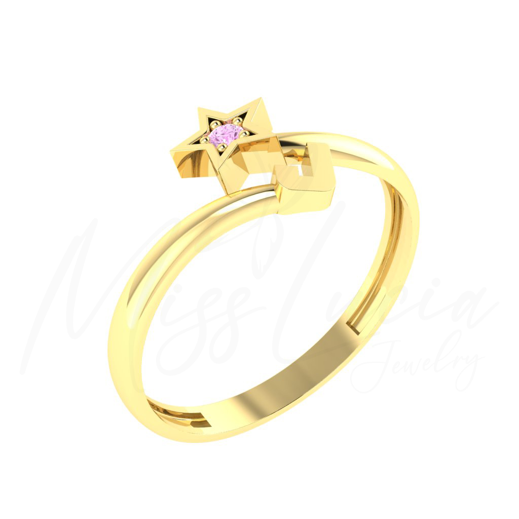 J Altın Yıldız Minimal Yüzük