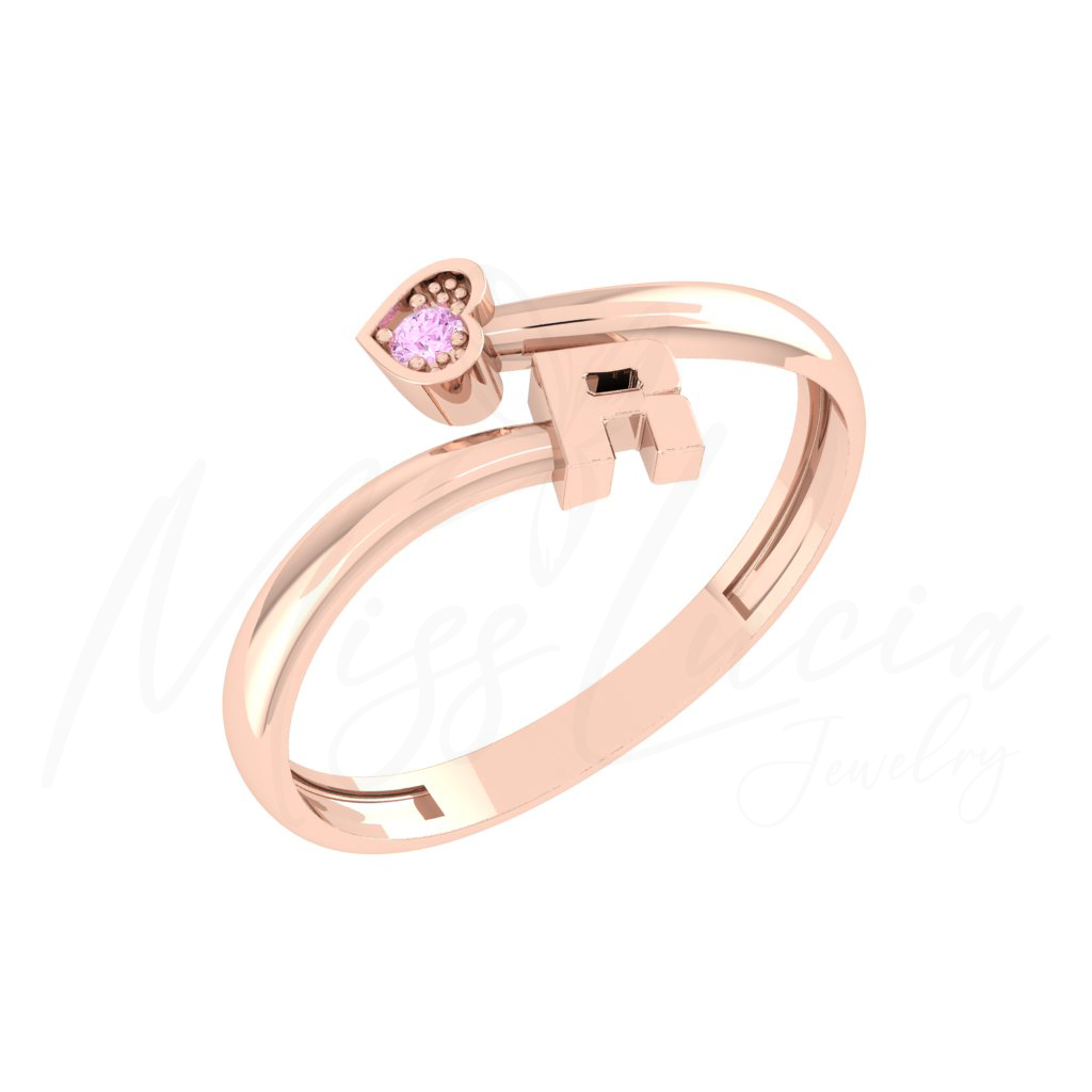 R Gold Heart Minimal Ring